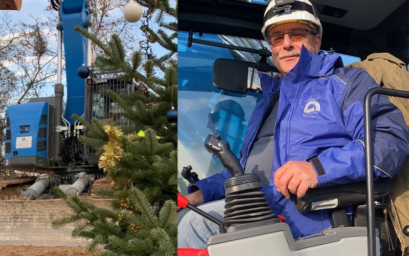 Spenden-Aktion: Bagger hat Baum geschmückt!